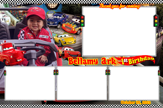 Creating a Disney Cars themed photo booth layout for a birthday can be a fun and delightful way to celebrate. Here are some steps to help you get started: