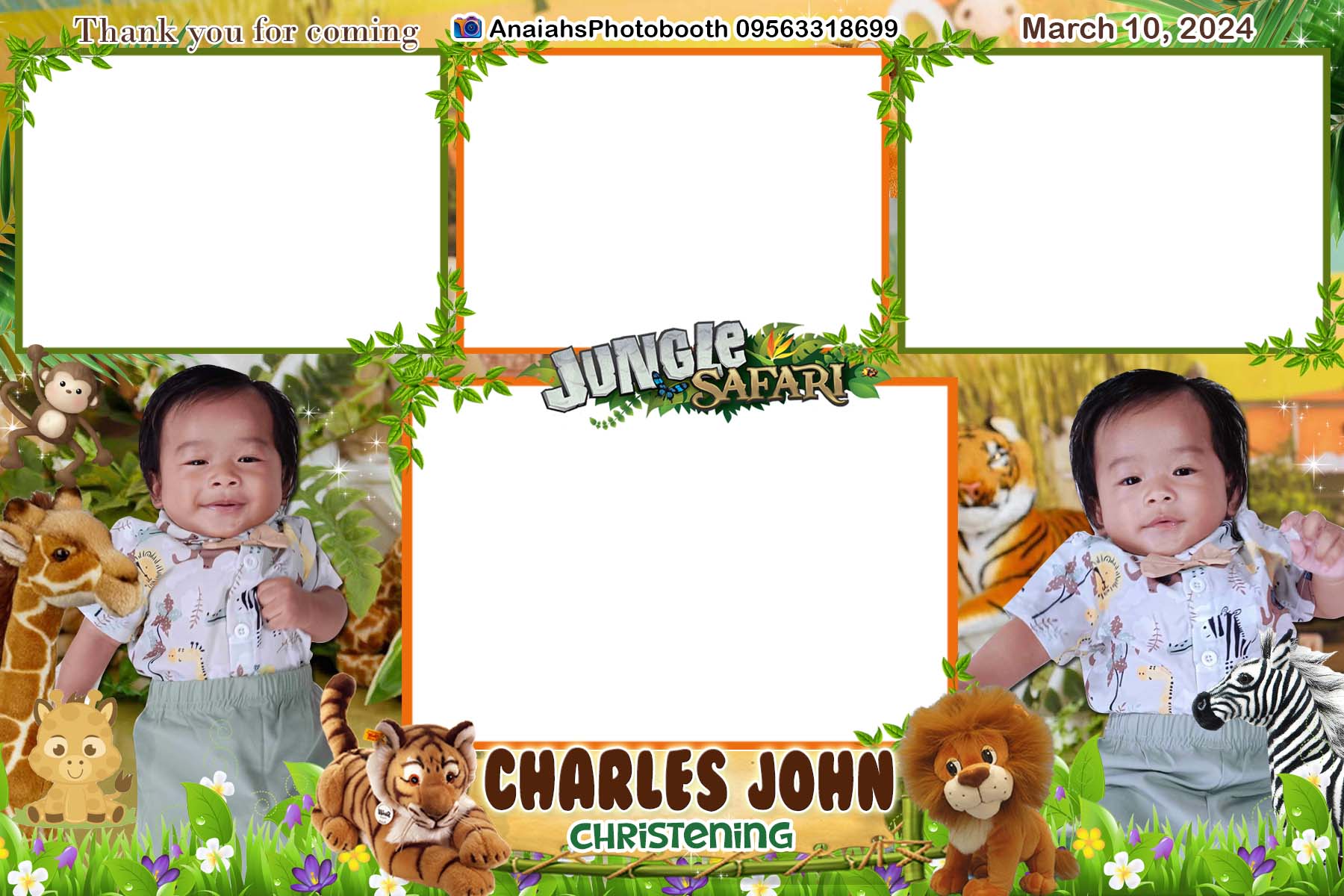 Create lasting memories at your christening celebration with a safari photobooth design.